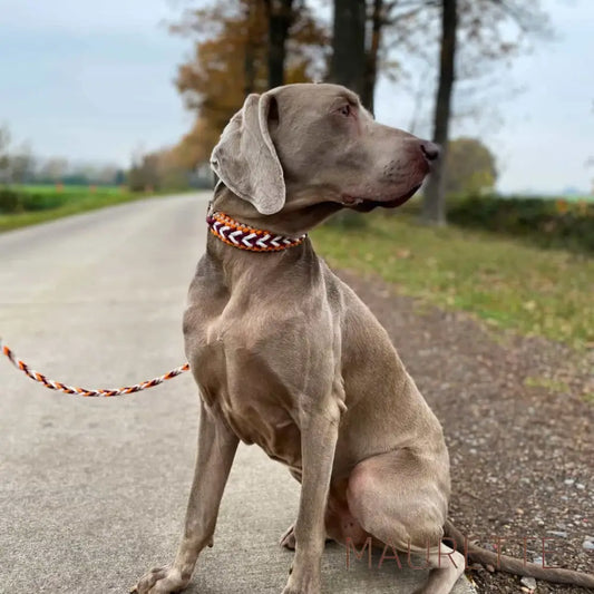 Set hals -en leiband - Paracord - Oranje/Wit/Rood